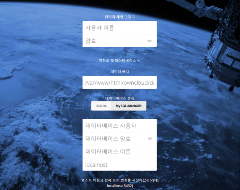 chown -R apache:apache /var/www/html/owncloud #계정 변경